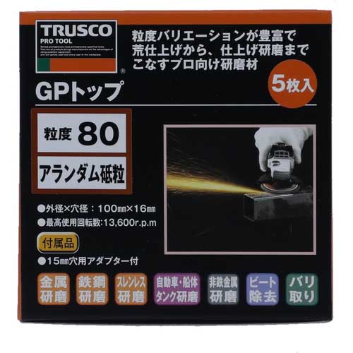 TRUSCO GPトップ アランダム Φ100 #80 (5枚入) TGP10015-A-80