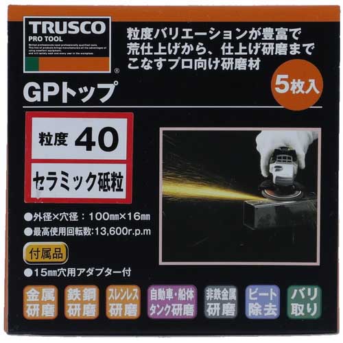 | 商品名 | TRUSCO GPトップ セラミック Φ100 #40 (5枚入) TGP10015-C-40 |