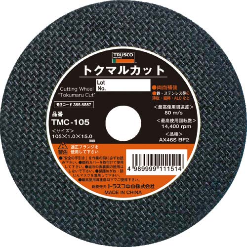 | 商品名 | TRUSCO 切断砥石 トクマルカット 105X1.0X15 TMC-105 |