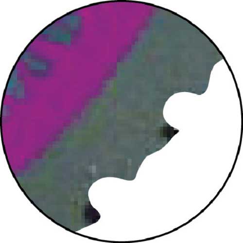 ●欠けに強い高低刃を採用し、それぞれの刃が切屑を分断して刃先摩耗を抑制します。