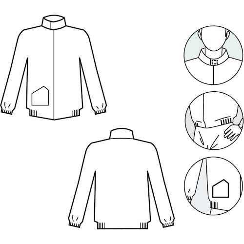 ●防護服に要求される3つの要素:バリア性、耐久性、快適性のバランスに優れ、低発じん性・低帯電性・耐水性を有したタイベック(R)を使用しています。