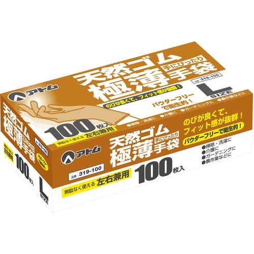 アトム 天然ゴム極薄手袋 100枚入 L 319-100-L