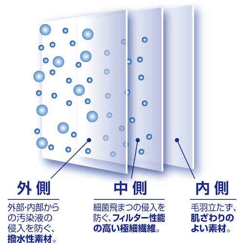 ●やさしいつけ心地でウイルス・細菌飛沫などをしっかりガードします。