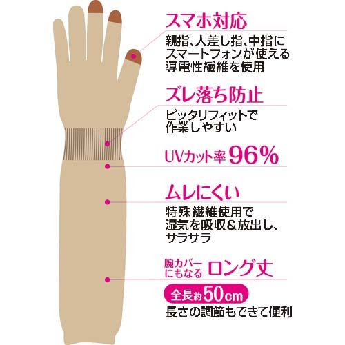 ●全長約50cmで腕カバーにもなり、UV対策にも最適です。