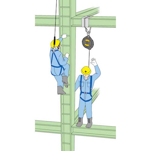 【特長】●作業者が落下しても短い落下距離でワイヤロープが停止します。