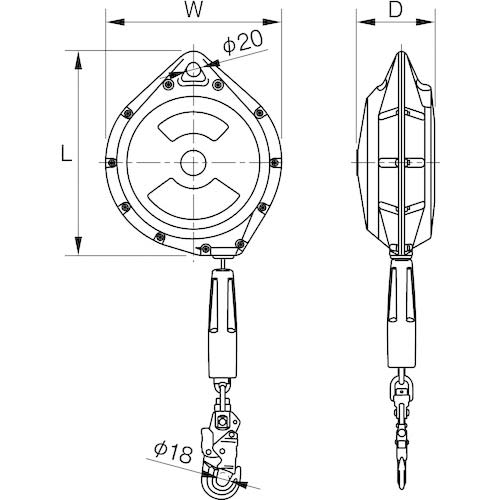 ●耐疲労性が高くサビに強いステンレス製ぜんまい、さびにくく信頼性の高いφ4.76mm航空機用ステンレスワイヤ、アルミ合金フックを採用しています。