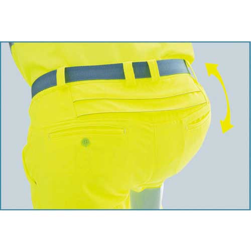 ●後腰部に伸縮メッシュを施すことで、前後斜めの屈伸の動きをスムーズにしました。