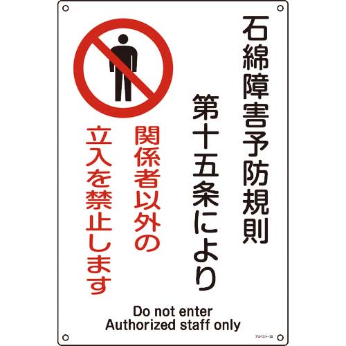 【特長】●労働安全衛生規則および石綿障害予防規則に基づく標識です。