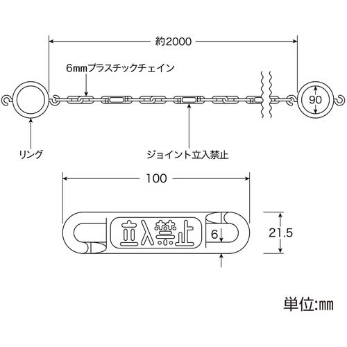 【特長】●プラスチックチェーンの両端部にコーン設置用のリングが付いています。