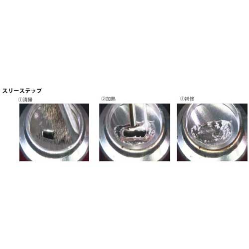 ●ロッドを母材にこすり付けて母材の温度でロッドを溶かし補修作業を行ってください。