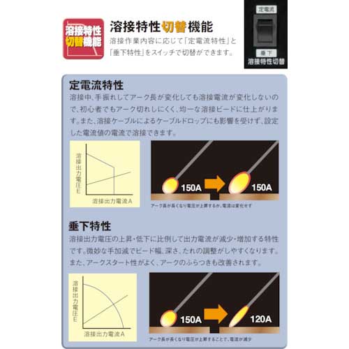 【特長】●電撃防止機能を搭載し、短絡電流調整器を装備しています。