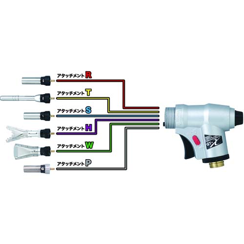 ●先端ノズル(別売)を交換することで、様々な炎が使用できる脱着方式を採用しました。