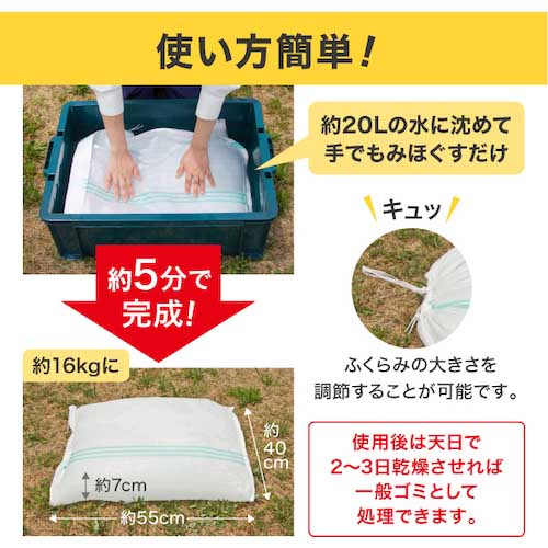 【特長】●水を吸わせるだけで、約5分で膨らみます。