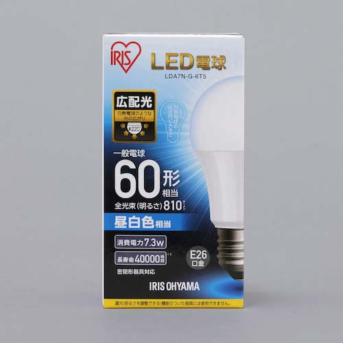 | 商品名 | アイリスオーヤマ 567947 LED電球 E26 広配光 60形相当 昼白色 LDA7N-G-6T5 |