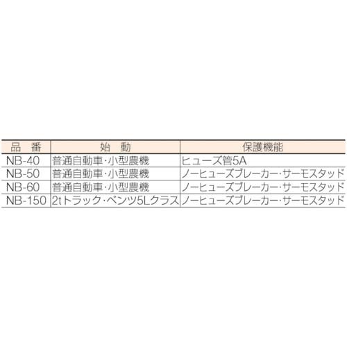 【特長】●農機具などのバッテリーの充電やバッテリーあがり時セルスタートに使用できます。