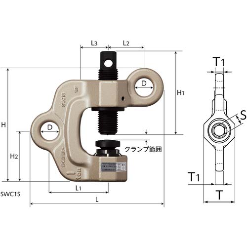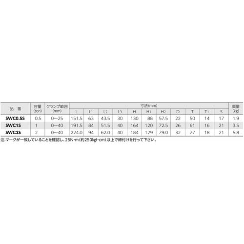 | 商品名 | スーパー スクリューカムクランプ(ダブル・アイ型)ツイストカム式 基本使用荷重1t 17×21両口ラチェットレンチショートタイプ付 SWC1S |