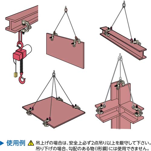 【用途】●建設・土木・鉄鋼・造船・製缶業など、各種業界における、鋼板・形鋼などの吊り上げ・吊り下げ・横引き・反転作業などに。