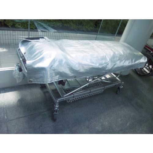 ●6ミクロンのポリエステルフィルムの両面にアルミニウム蒸着層をつけたフィルムと耐炎繊維朱子織物(高密度品)とをラミネートした複合品です。