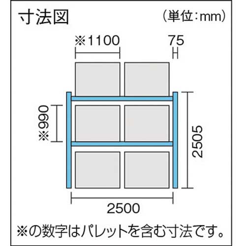 | 商品名 | TRUSCO 重量パレットラック2トン2500×1100×H2500 2段 単体 2D-25B25-11-2 |