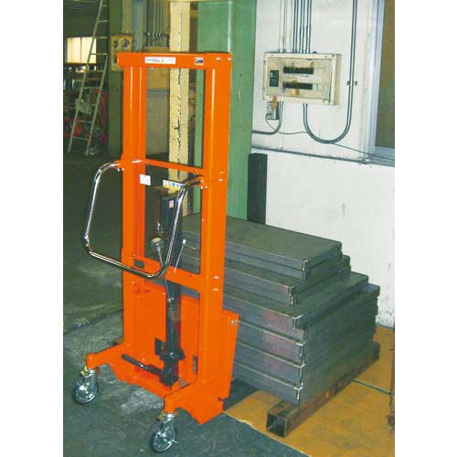 ●狭い通路でも簡単操作、場所をとらない足踏み式のリフターです。