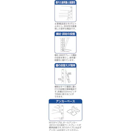 【特長】●主要構造部分をボルト止めにし、安全性を重視した堅牢な構造です。