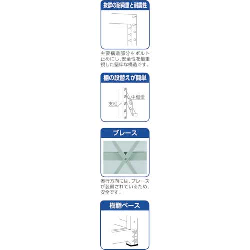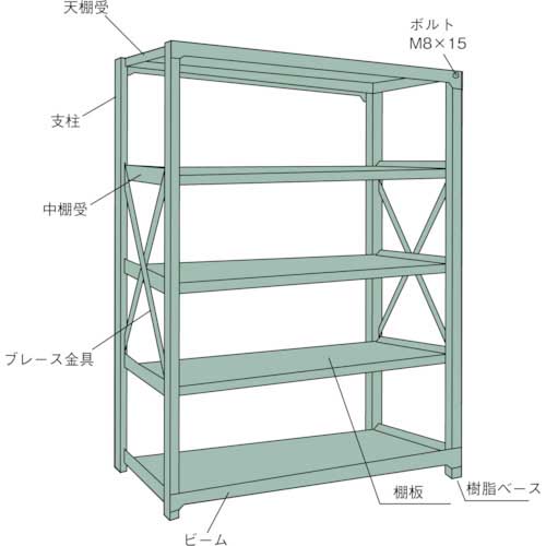 | 商品名 | TRUSCO 中量ボルト式棚 R3型 W1200×D450×H1800 5段 連結 R3-6455B |