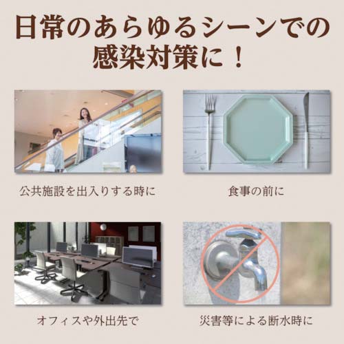【特長】●エタノール濃度55.0w/w%であるため、消防法における危険物の適用外の手指消毒剤です。