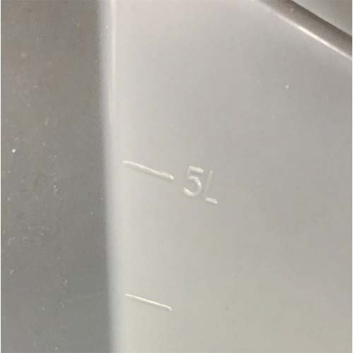 ●チリトリを立てて、中に水をためることができます(内側に1リットル単位で5リットルまで目盛り付き)。