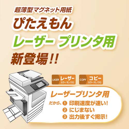 【特長】●レーザープリンター用の薄型マグネット用紙で、印刷してダイレクトにスチールにピタッと貼れます。