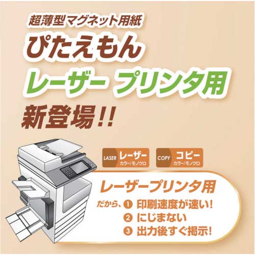 【特長】●レーザープリンター用のマグネット用紙で、印刷してダイレクトにスチールにピタッと貼れます。