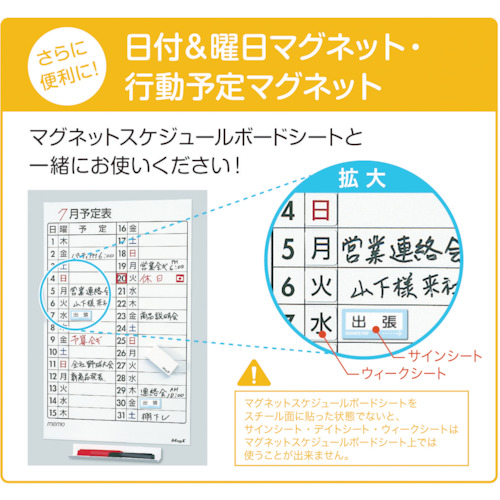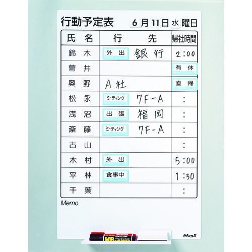 【特長】●「直行」「外出」「有休」などよく使う項目を行動予定表に貼るマグネットシートです。