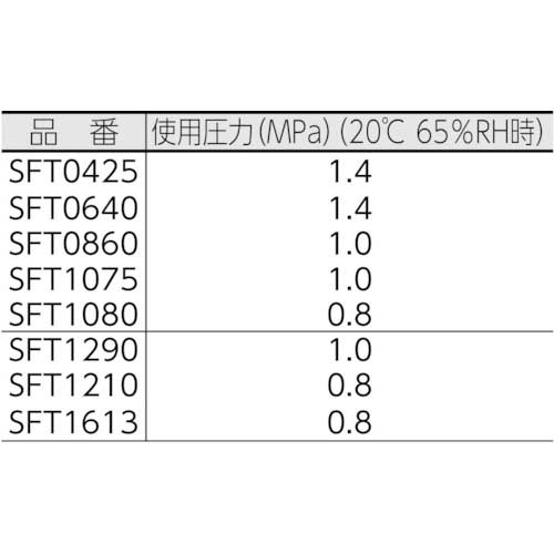 ●チューブの破壊圧力は温度の上昇と共に低下しますので、使用圧力をよく理解し充分余裕のある安全率をみてください。