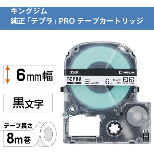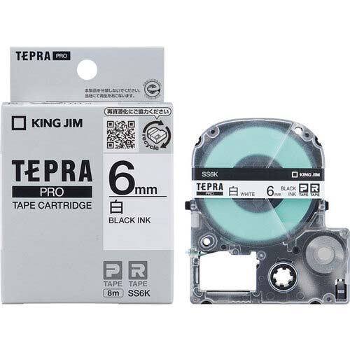 キングジム テプラPROテープカートリッジ スタンダード 幅6mm 白ラベル/黒文字 SS6K