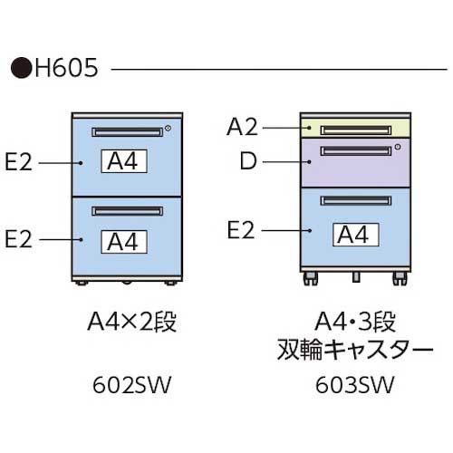 ●タイプ:双輪キャスターA4・3段