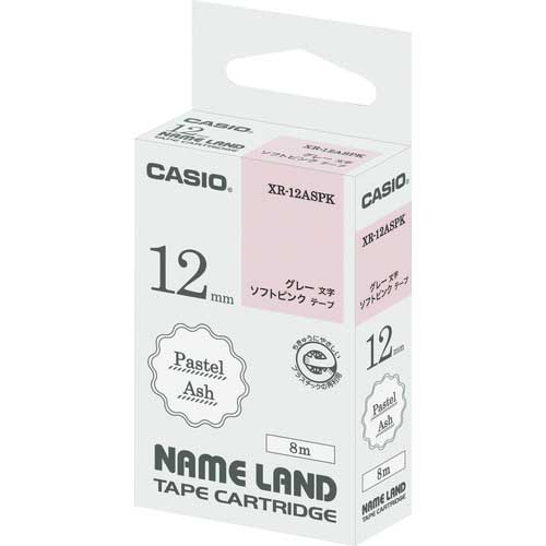 カシオ 【純正】 ネームランド用アッシュテープ、ソフトピンクにグレー文字12mm XR-12ASPK