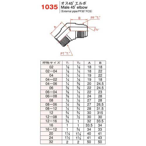 【特長】●R(PT)-G(PF)(オスシート)のオス45°エルボです。