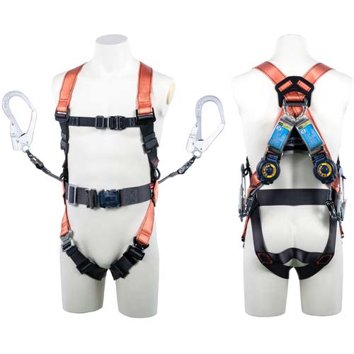 藤井電工 ツヨロン コアハーネス 胴ベルト付き ツインランヤード付き ロック機構付き巻取式SRリトラ オレンジ Mサイズ TH-502-2TR93SV-OT-M-OR-2R23-BX