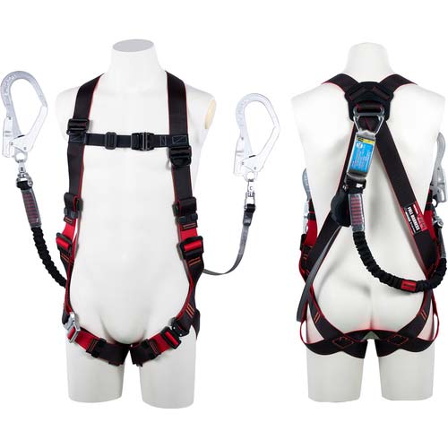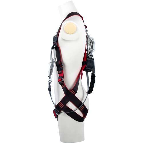 藤井電工 ツヨロン レヴォハーネス ダブルランヤード付き ロック機構付き巻取式ワン・ハンドリトラ・伸縮式ノビロン(BK) 黒・赤 Mサイズ TH508-OHNV93SV-OT-BKR-M-2R23BX