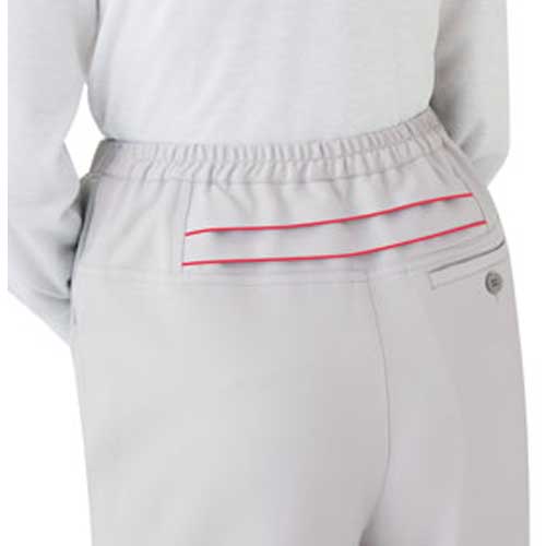 ●ウエストは脇からフロントにかけてお腹のふくらみに合わせ、ゴム調節が可能です。