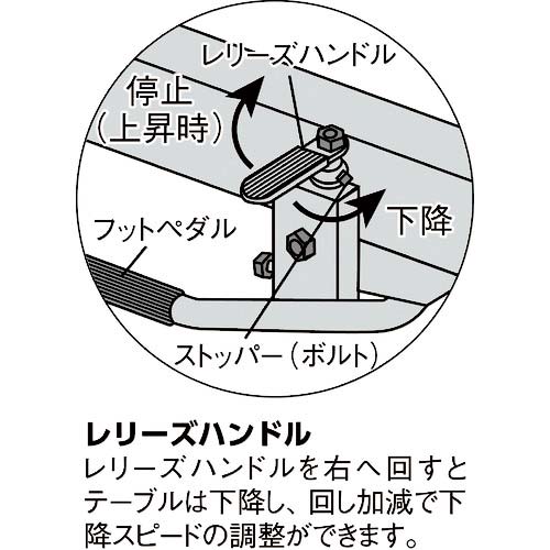 ●昇降方式:足踏み油圧式(スピンドルオイル:ISO-VG22使用)