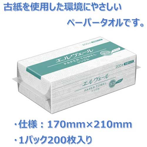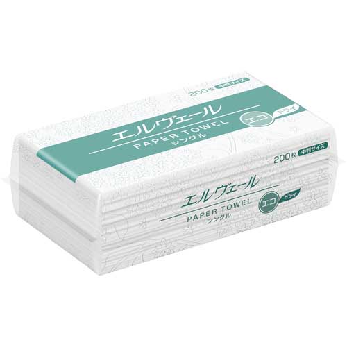 | 商品名 | 【廃番】エリエール エルヴェールペーパータオルエコドライシングル200枚中判 703508 |