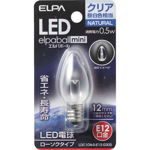 ELPA 電球(LED) LED電球ローソク形E12 明るさ18lm クリア昼白色相当 LDC1CN-G-E12-G305