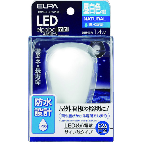 | 商品名 | ELPA 電球(LED) LED電球サイン形防水E26 明るさ60lm 昼白色相当 LDS1N-G-GWP900 |