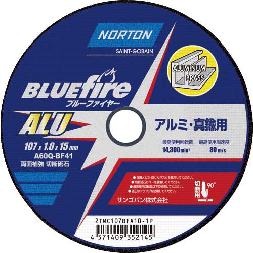 NORTON 切断砥石 ブルーファイヤ―ALU(アルミ) 107mm×1.0mm 2TWC107BFA101P