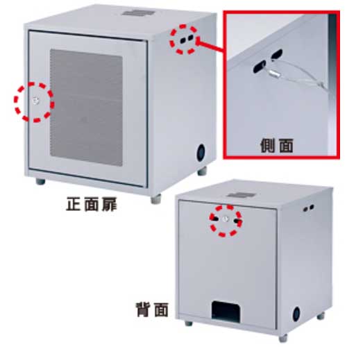 ●扉と背面パネルには鍵を装備し、セキュリティ、いたずら防止に最適です。
