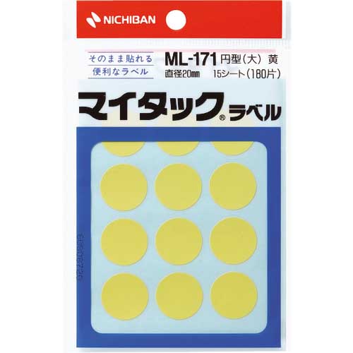 【廃番】ニチバン マイタックラベル (カラーラベル)ML-171 黄 丸20mm ML-1712