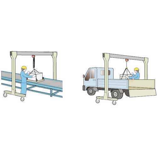 【廃番】スーパー ポータブル門型クレーン(アルミレール仕様) 定格吊荷重0.49t 全幅2.9m PMC4925