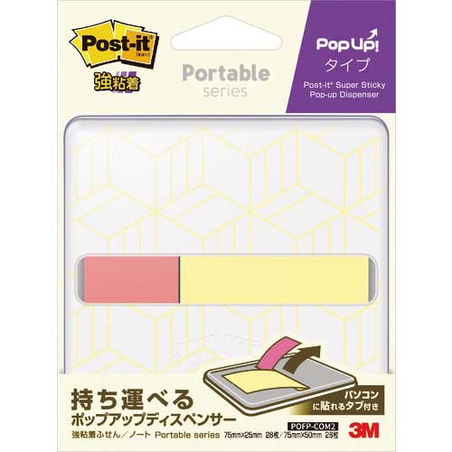 【廃番】3M ポスト・イット 強粘着ふせん/ノートポータブルシリーズ ポップアップタイプ ディスペンサー付 POFP-COM2