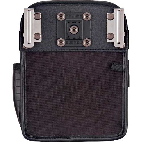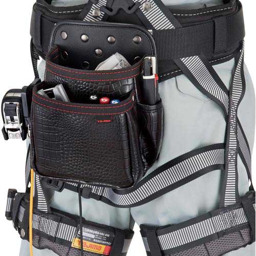●幅広い職人さんに適したスタンダード形状腰袋はベルトからの浮きを防止するサイドクリップ付(裏面)です。