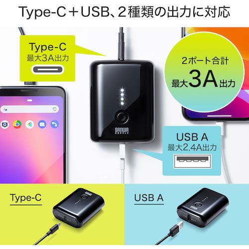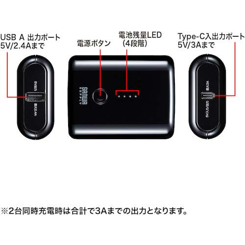 【アウトレット】SANWA モバイルバッテリー 10,000mAh BTL-RDC20BK